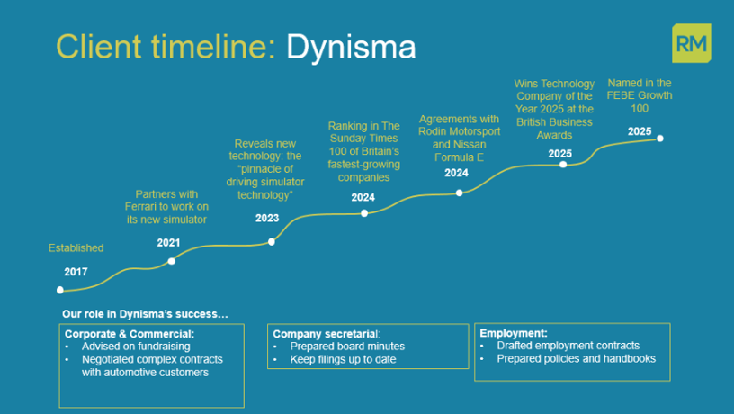 Dynisma is a great Bristol business and we’ve enjoyed playing a part in their successful scale-up journey. From the start, we’ve invested time to get to know Ash and the leadership team, and understand the ins and outs of the business so that our advice adapts as their requirements change.